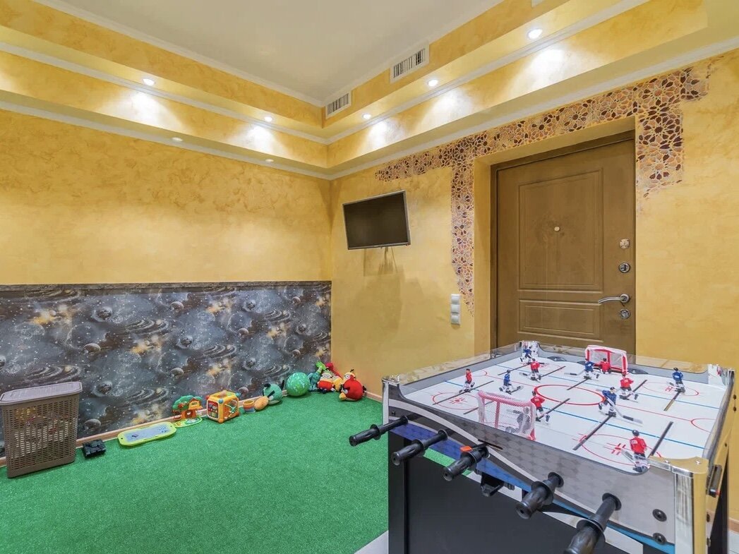 Большое помещение, есть детская комната, хоккей для детей. Оборудование банно- прачечной новое, исправное . Настоящая русская баня с вениками))